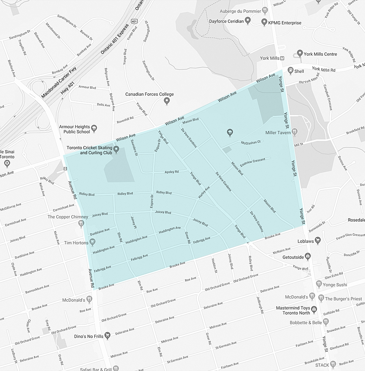 The Cricket Club neighbourhood is a well-established, family-oriented community neighbouring Bedford Park and Hogg’s Hollow. Cricket Club residents display a pride of ownership that can be seen in their manicured lawns and landscaped gardens throughout the neighbourhood. There is a relaxed, country charm ambience here – a result of the abundance of mature trees lining the winding streets.