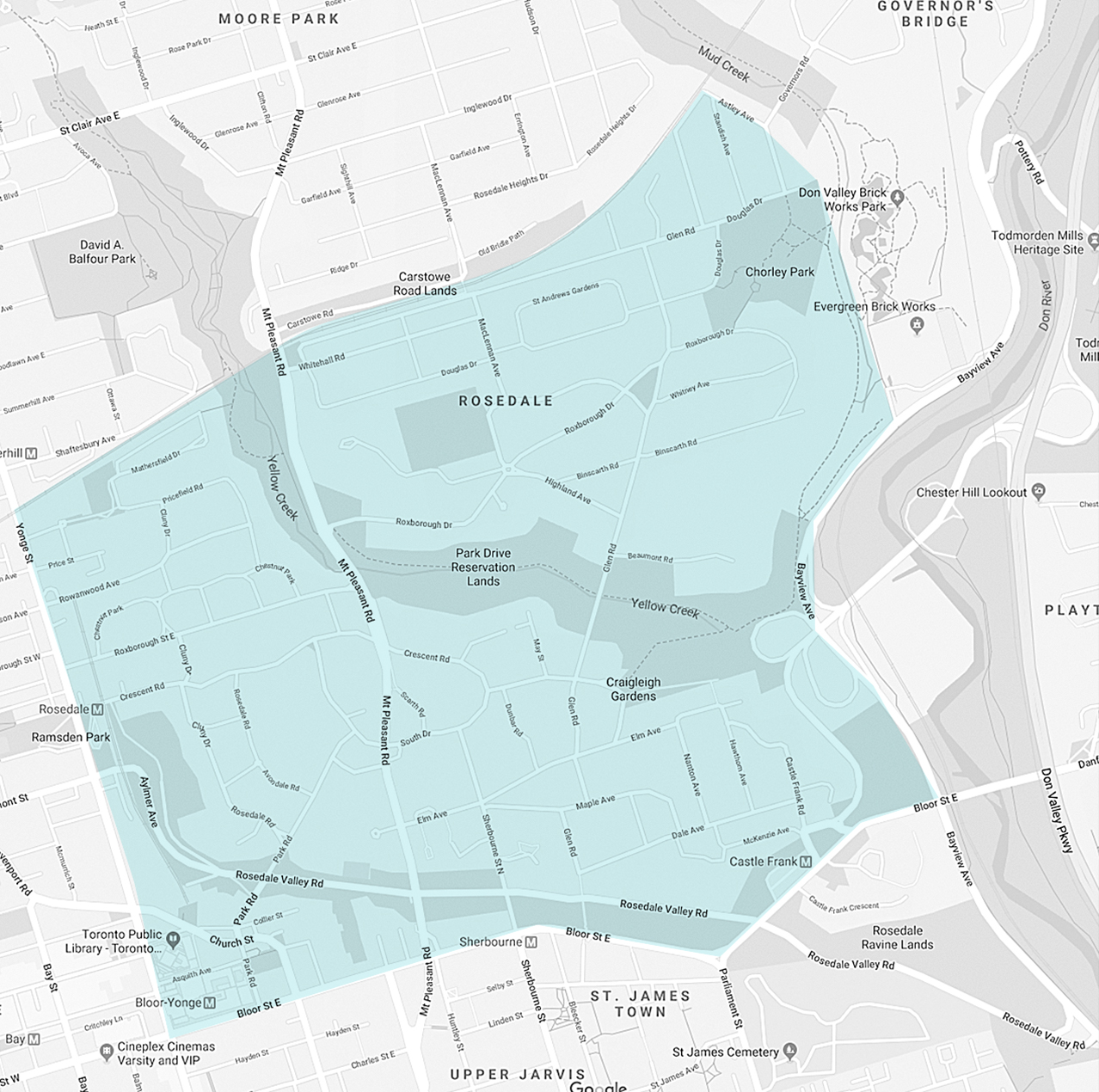 Uniquely traversed by beautiful ravines, trails, and parkland that make one feel far away from the city, Rosedale is just moments away from Toronto's major business, entertainment, and shopping districts. It’s no surprise many of Toronto's wealthiest and most prominent citizens reside in Rosedale.