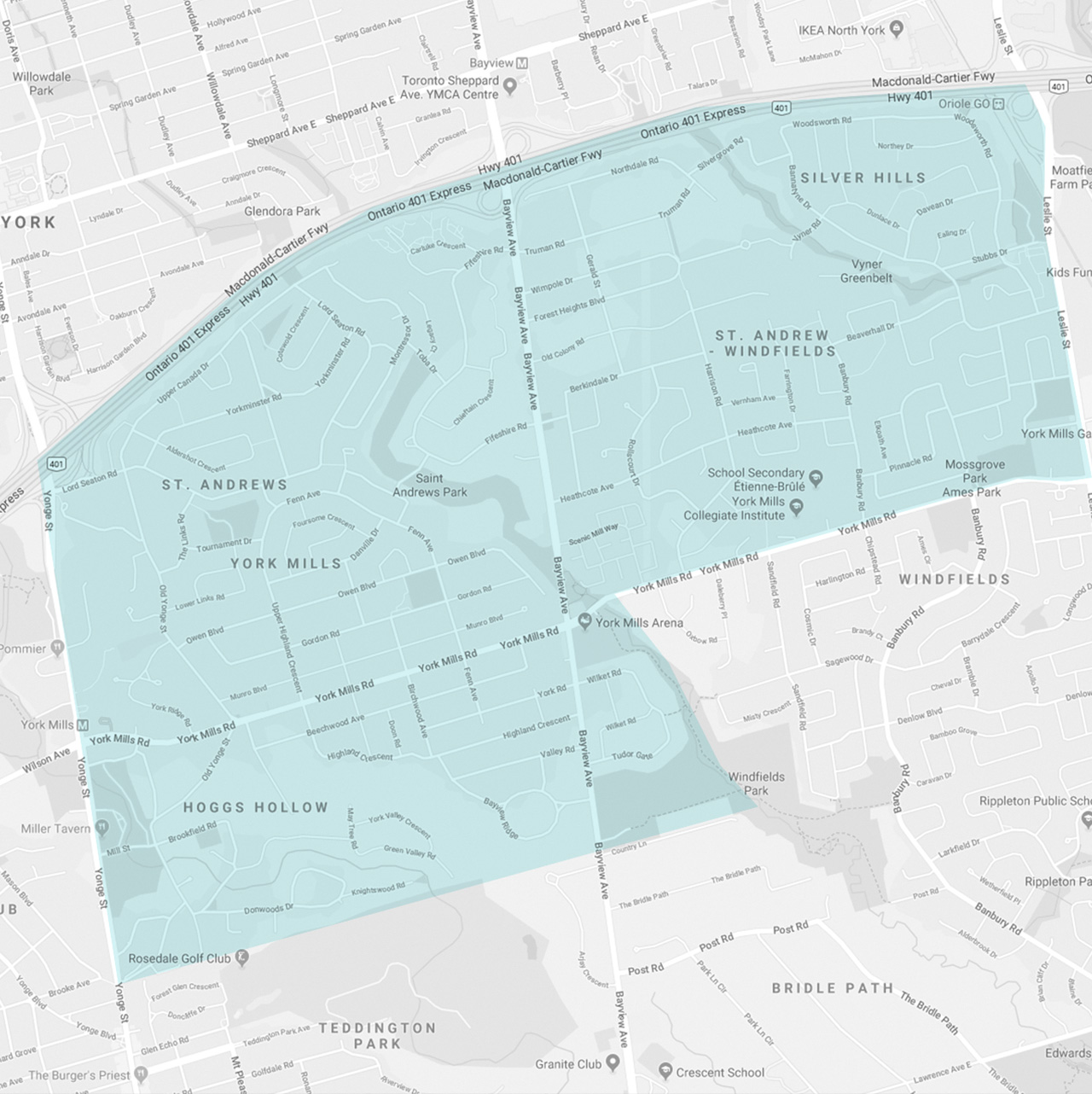 Laden with greenery and home to the prestigious community of Hogg’s Hollow, York Mills remains one of the city’s most desirable neighbourhoods.