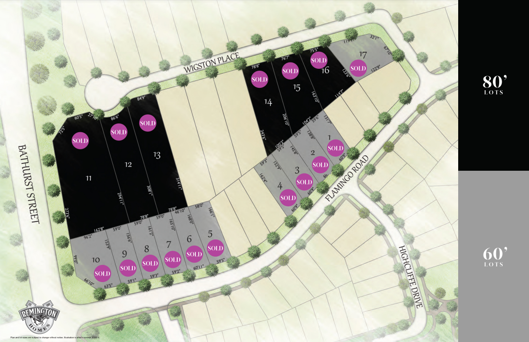 Located at Bathurst, just south of Highway 407, Wigston Green Estates is surrounded by acres of lush greenery and accessible amenities. An exclusive cul-de-sac of sixteen luxury 60’ and 80’ lots, with expansive depths of up to 314’, each estate offers exceptional views and the most premium exterior finishes.